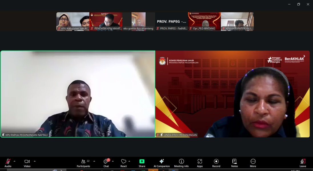 Komisi Pemilihan Umum (KPU) Provinsi Papua Pegunungan menggelar rapat persiapan pleno Pemutakhiran Data Pemilih Berkelanjutan (PDPB) Triwulan IV Tahun 2025 secara daring melalui Zoom Meeting, yang diikuti oleh delapan KPU kabupaten di wilayah Papua Pegunungan.