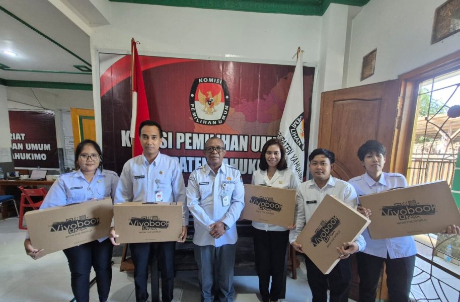 Komisi Pemilihan Umum (KPU) Kabupaten Yahukimo menyerahkan inventaris kantor berupa laptop notebook Asus Vivobook K3605V kepada para Calon Pegawai Negeri Sipil (CPNS) Tahun Anggaran 2024.