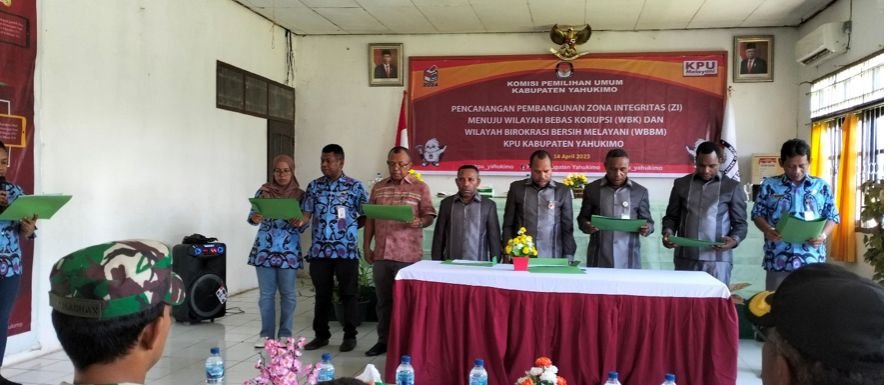 Yahukimo – Komisi Pemilihan Umum (KPU) Kabupaten Yahukimo (Andreas Silak) secara resmi mencanangkan Pembangunan Zona Integritas (ZI) menuju Wilayah Bebas dari Korupsi (WBK) dan Wilayah Birokrasi Bersih dan Melayani (WBBM) pada tanggal 13 April 2023. Kegiatan ini merupakan langkah konkret dalam mewujudkan tata kelola pemerintahan yang bersih, transparan, dan berorientasi pada pelayanan publik yang prima.
