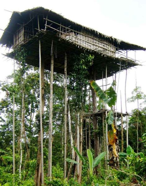 - Tinggi dan Tertutup, Rumah ini dibangun tinggi untuk menghindari banjir musiman, serangan binatang buas (seperti ular dan buaya), dan yang terpenting sebagai benteng pertahanan diri dari ancaman suku lain di masa lalu.