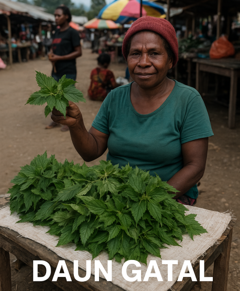 Menariknya, di Kabupaten Yahukimo, daun gatal tidak hanya tumbuh liar di alam, tetapi juga menjadi komoditas yang sering dijual di pasar-pasar tradisional, terutama di Pasar Mama-Mama Papua yang terletak di Jalan Paradiso, Dekai. Di pasar tersebut, mama-mama Papua menjajakan daun gatal segar yang baru dipetik dari kebun atau hutan sekitar. Keberadaan daun gatal di pasar ini menunjukkan bagaimana masyarakat Yahukimo masih sangat menghargai dan memanfaatkan kekayaan alam lokal sebagai bagian dari kehidupan sehari-hari.