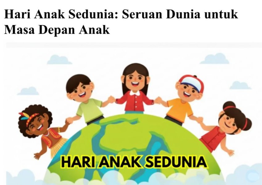 Hari Anak Sedunia bukan hanya ajakan untuk perayaan, tetapi peringatan moral bahwa: