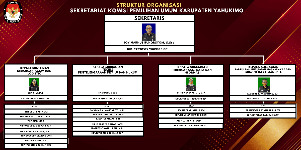 Berikut kami sampaikan Struktur Sekretariat KPU Kabupaten Yahukimo Klik di sini